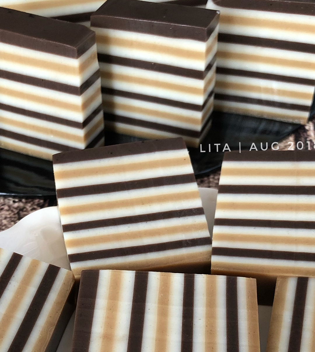 * Setelah lapisan kedua setgh mengeras, segera tuang lapisan ketiga (puding kopi) @150ml